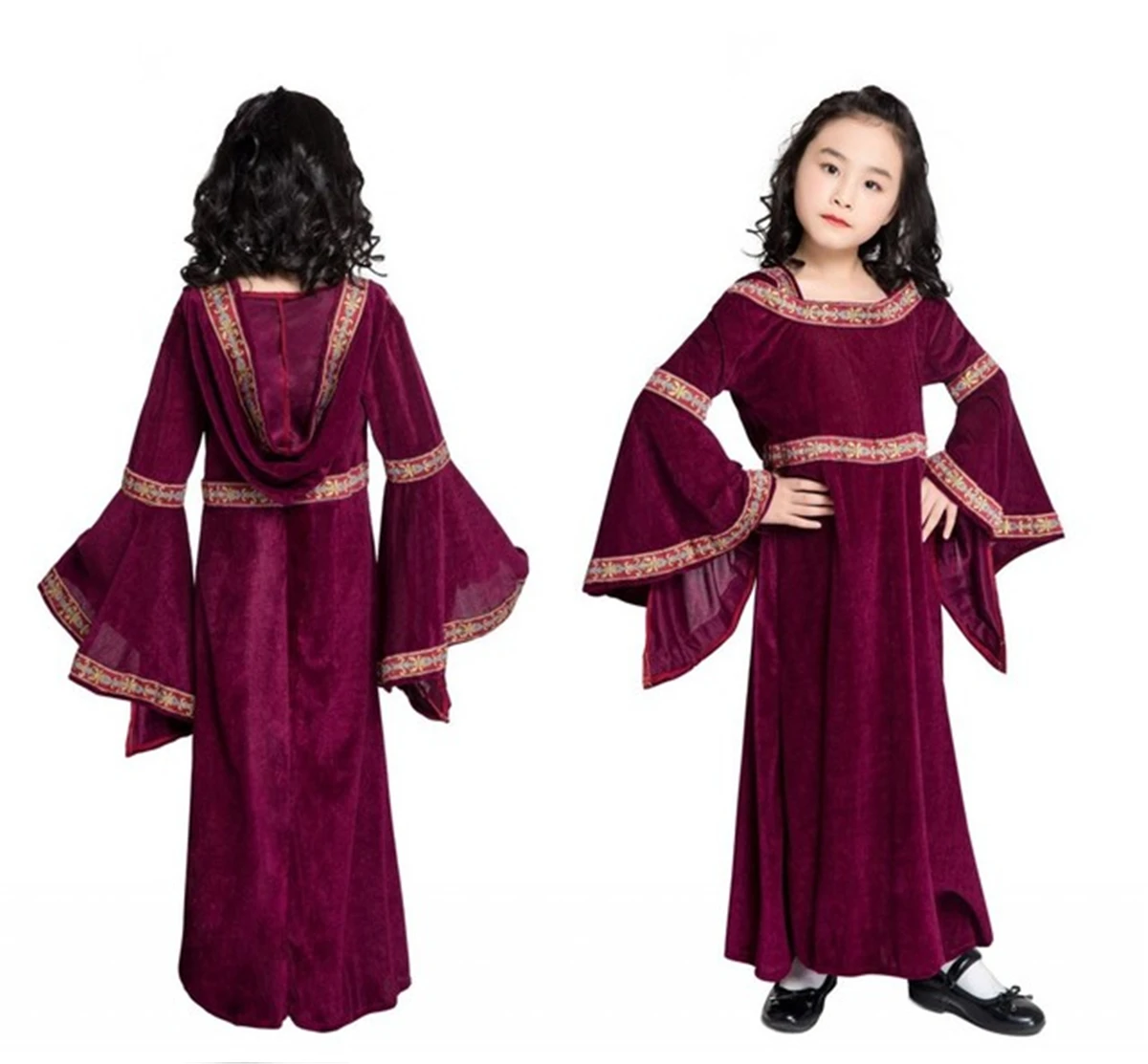 HIGH QUALITY Kids Girls Renaissance Gothic Victorian Medieval Long Bell Sleeves Hoodie Slim Family Matching Dres