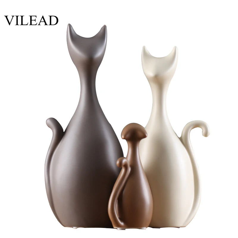 Best VILEAD Ceramic Family of Three Four Cats Figurines Nordic Animal Living Room Decoration Home Orname