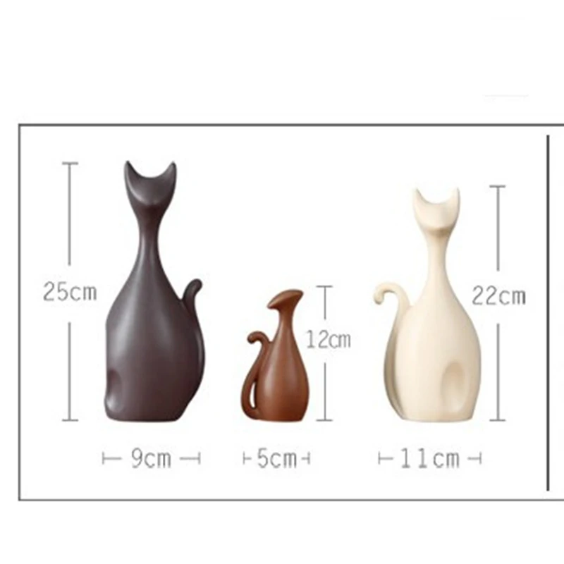 VILEAD Ceramic Family of Three Four Cats Figurines Nordic Animal Living Room Decoration Home Orname